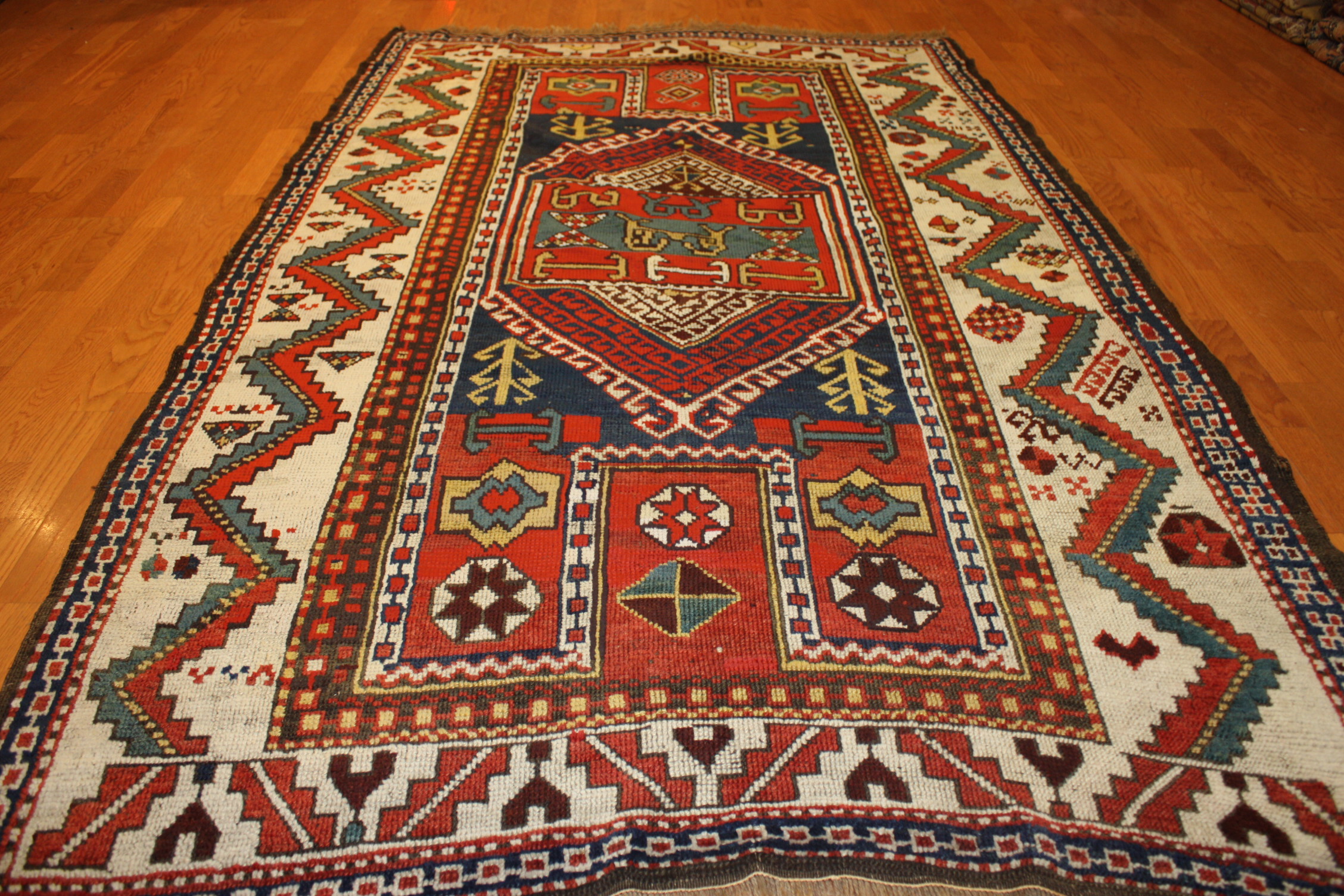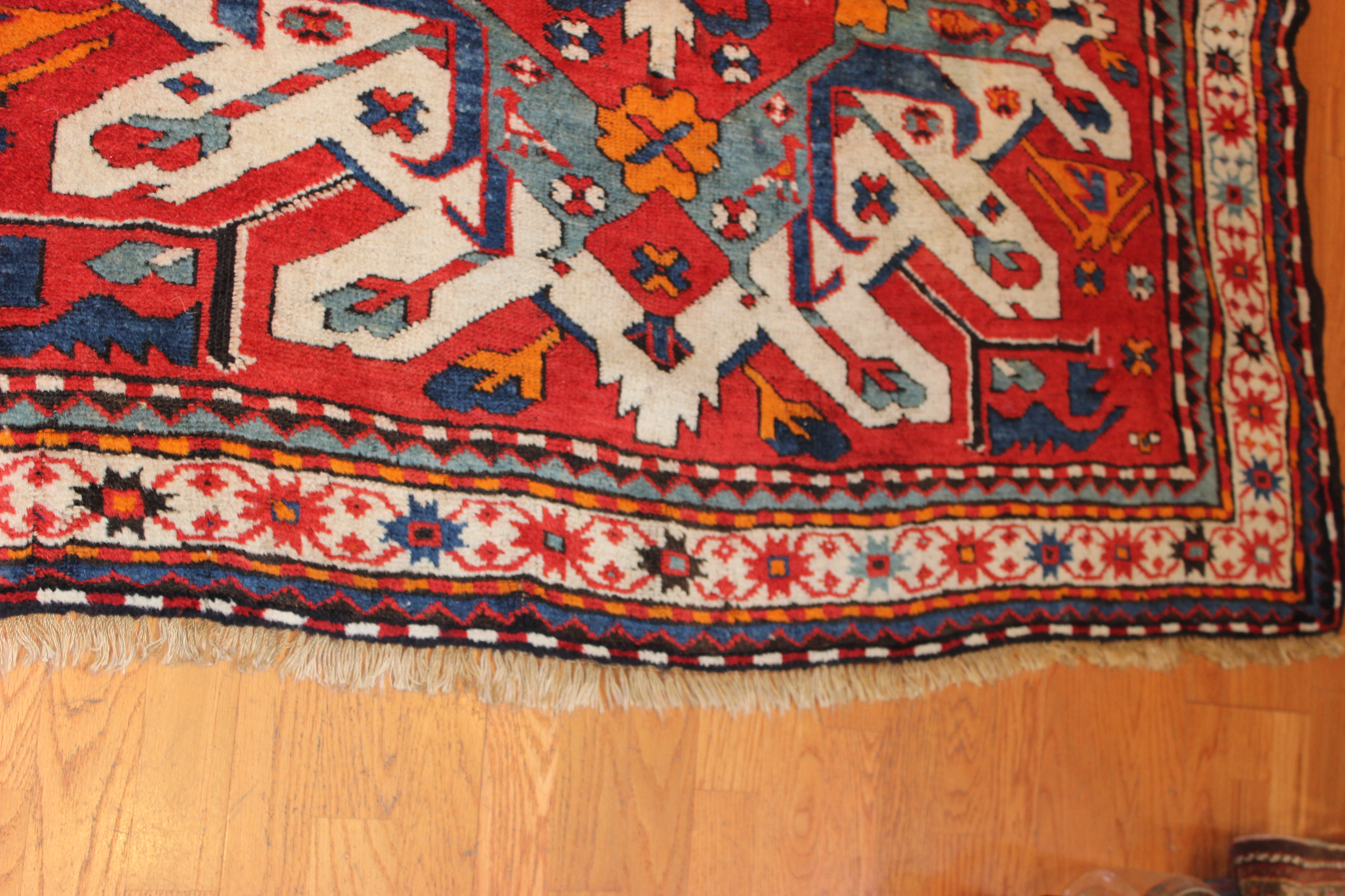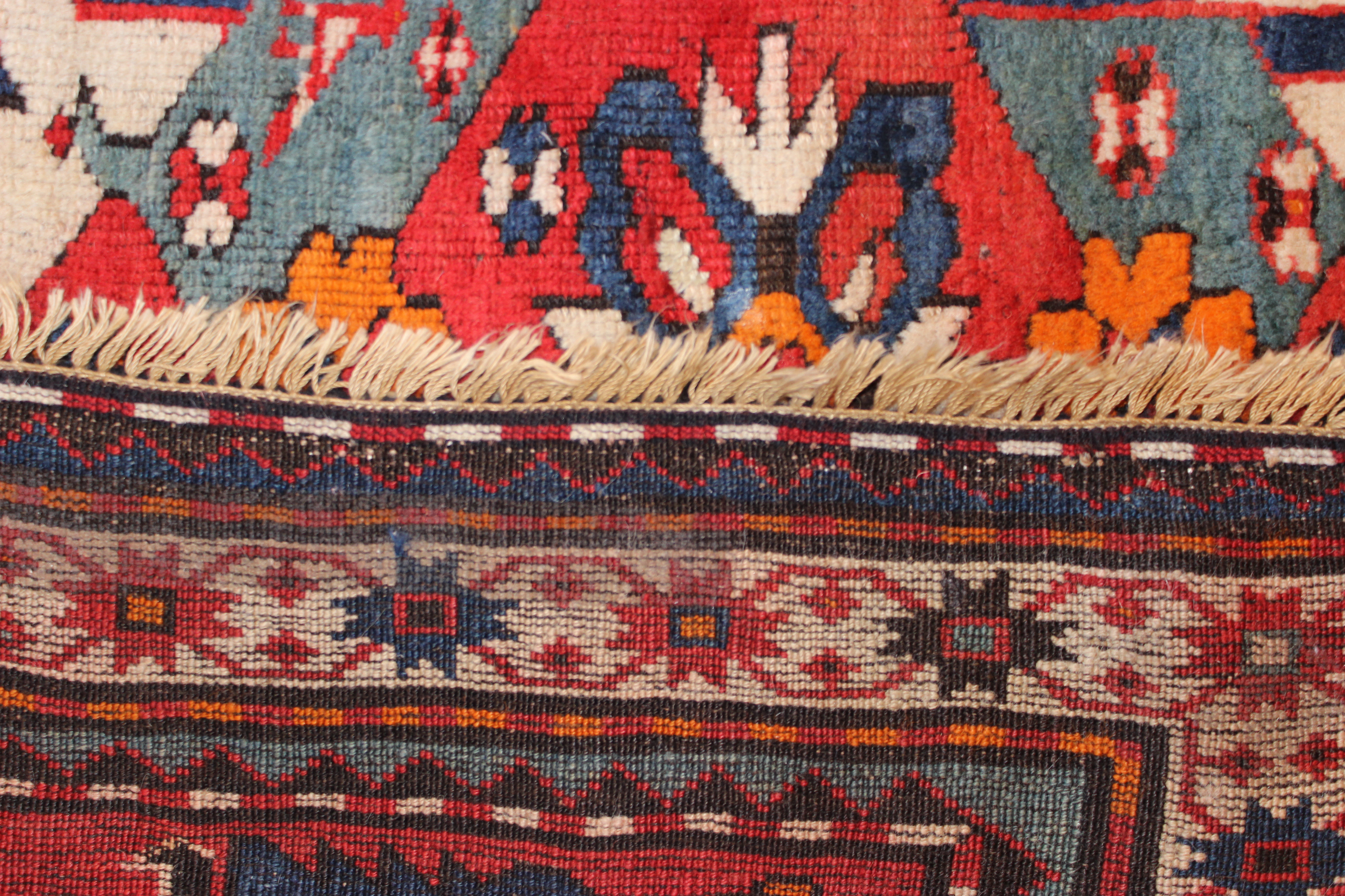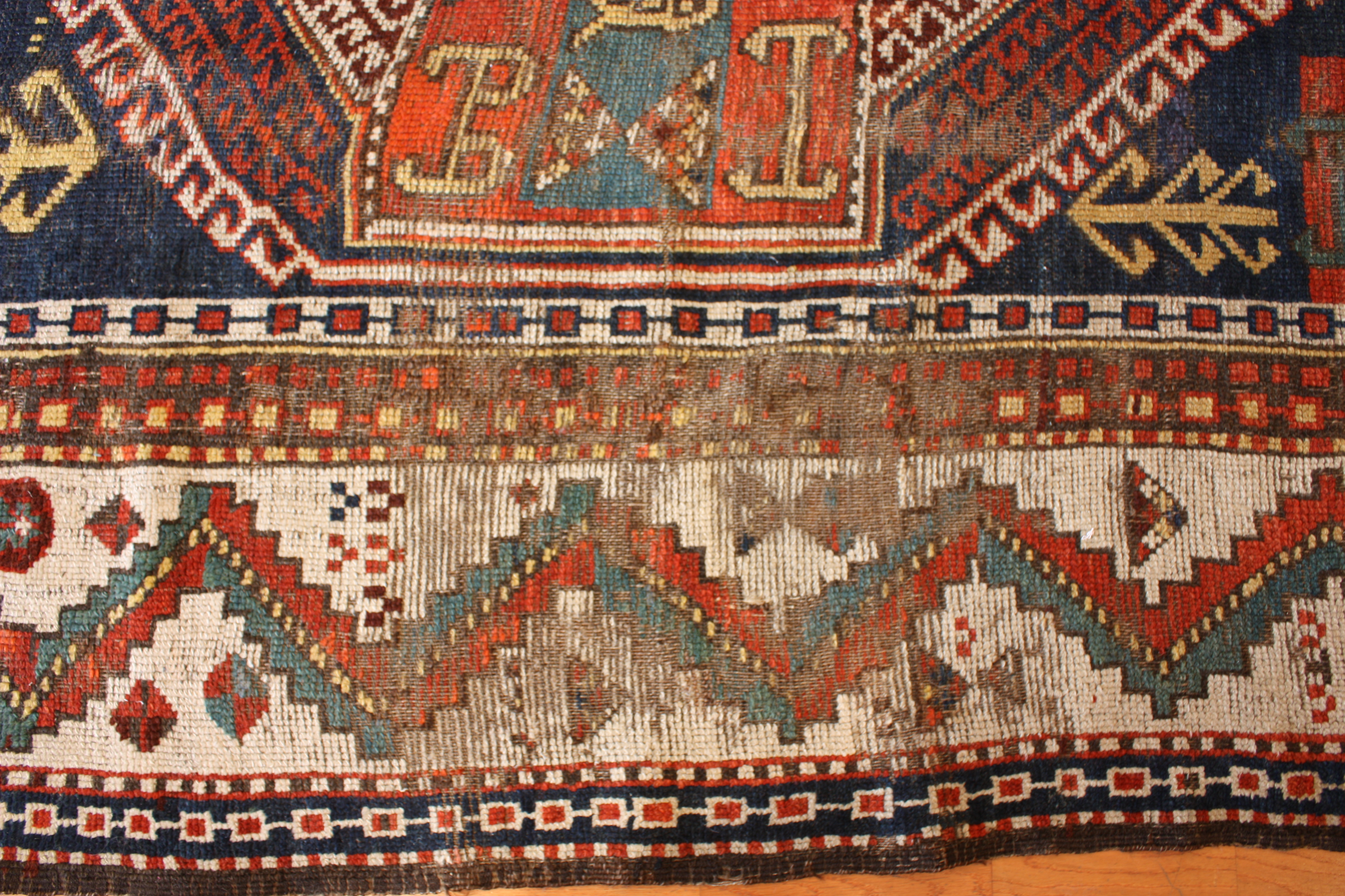 Antique Adler Kazak Weaving end of rug 1