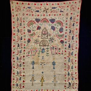 19th Century Indian Silk & metal thread embroidery Prayer Style